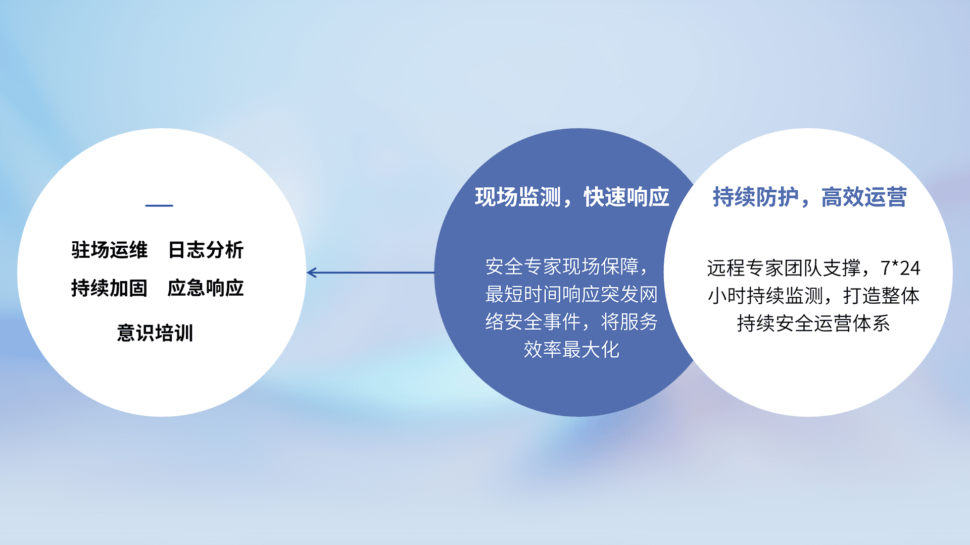 7X24小时持续监测安全事件,保持安全策略有效性,降低资产脆弱性风险,,,,精准拦截黑客攻击,,减少被黑客利用的机会,,,第一时间遏制,,,,降低损失。。。。